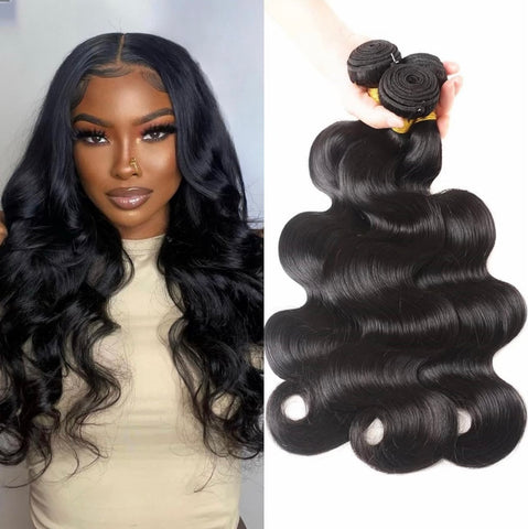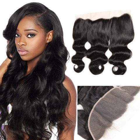 Extensiones de cabello indio 1b BodyWave - Oferta de 3 paquetes con frontal de encaje indio 1b BodyWave 13x4 HD