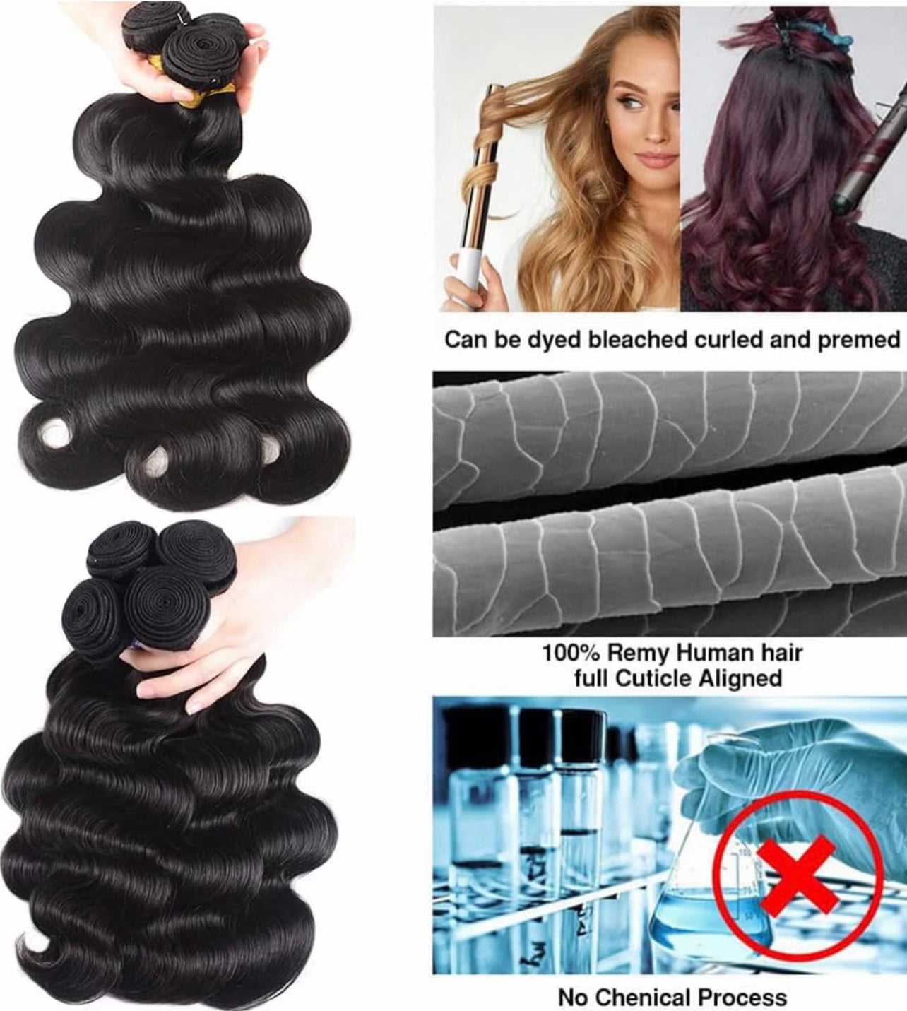 Son fáciles de peinar y se pueden alisar, rizar o usar en su estado natural para una apariencia elegante y sofisticada. Los paquetes vienen en una variedad de longitudes y texturas, lo que le permite elegir la combinación perfecta para su estilo y preferencias únicos. Ya sea que busques una apariencia atrevida y dramática o un estilo más sutil y natural,