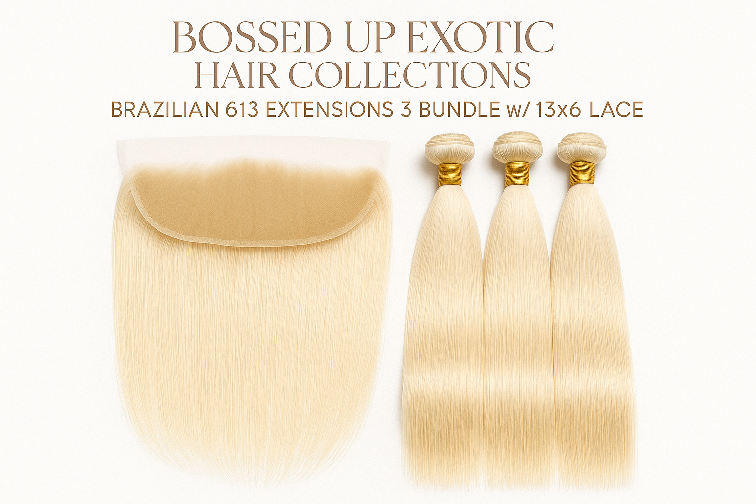 Colecciones Bossed up de cabello exótico | Paquete de 3 extensiones brasileñas 613 con encaje de 13x6