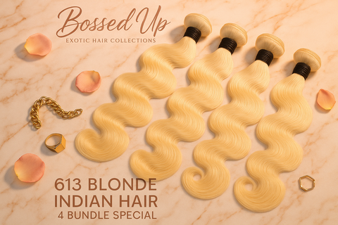 ¡Mejora tu estilo con las colecciones de cabello exótico BossedUp! Nuestros paquetes premium de rubio indio 613 y extensiones de cabello humano sin procesar ofrecen posibilidades de peinado ilimitadas, desde lisos sedosos hasta rizos deliciosos. No te conformes con nada menos que la perfección: ¡elige BossedUp y mata todos los días!