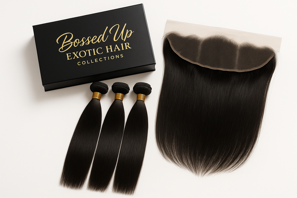 Extensiones de cabello indio 1b recto - 3 paquetes con frontal de encaje indio 1b recto 13x4 HD