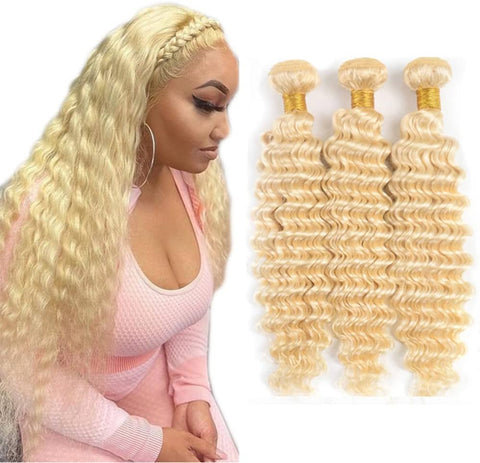 Extensiones de cabello brasileño DeepWave- 613 Rubio 3 paquetes con frontal de encaje brasileño DeepWave Rubio 13x4