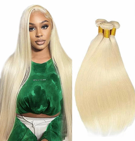 Extensiones de Cabello Brasileño Recto - 613 Rubio 3 Paquetes con Frontal de Encaje Rubio Recto Brasileño 13x6