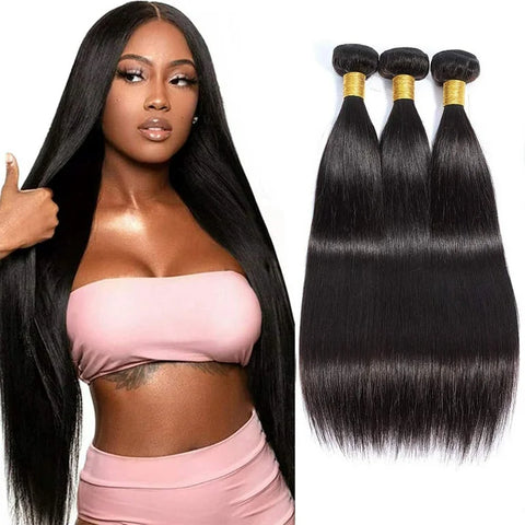 Extensiones de cabello brasileño 1b recto - 3 paquetes con cabello brasileño 1b recto 13x4 HD Lace Frontal