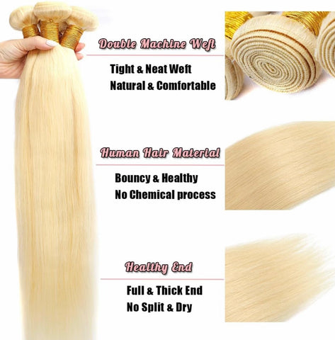 Extensions de cheveux brésiliens blonds 613 - Offre groupée de 3